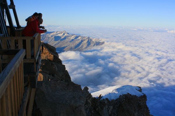 Der wohl in Europa einmalige Balkon der Capanna Regina Margherita auf der Signalkuppe / Punta Gnifetti (4554m).