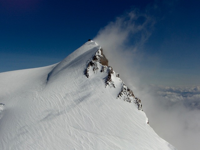 Signalkuppe oder Rif. Margharita - wie auch immer! Sehr leich zu erreichen, am Gipfelgrad sind Wechten, also aufpassen, wo man hintritt! Nicht zu weit rechts, denn da geht es einige Tausend Meter runter. Da der Normalweg ja schon als (sehr) bezeichnet werden kann, führen mehrere Weg nach Rom, die alle um einiges aber schwerer sind. Ziehe dazu im Buch 4000er - Normalwege, Signalkuppe, andere lohnende Routen.