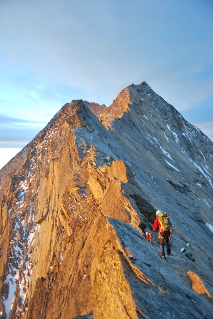 Die letzten Meter über den Grat vom Vorgipfel P.3972m hinüber zum Hauptgipfel. Ob es oben noch genügend Platz hat?