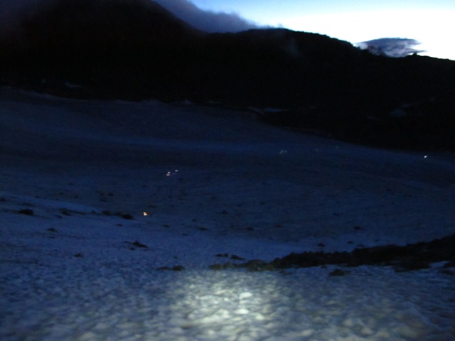 Aufstieg im Dunkeln - Stirnlampen auf dem Hohlaubgletscher
