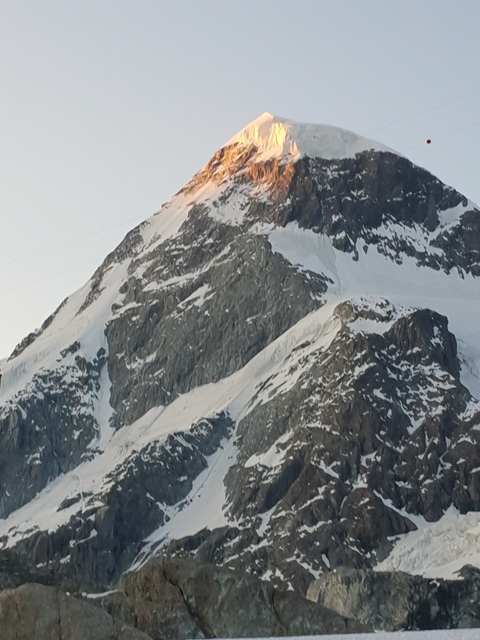 Mit David Weimer Anfahrt nach Täsch, dann weiter nach Zermatt. Von dort mit dem Lamborghini, nein, natürlich zu Fuß zur Gandegghütte. Wir waren die ersten Menschen seit Wilhelm dem Eroberer, die die 1600Hm zu Fuß machten. Nach 4h "Schlaf" dann zum Theodulgletscher und dann doch fast 5h bis Gipfeli. Dort nahezu, ich schreibe nahezu, alleine. Die Massen kamen erst mit Öffnung der Bahn, da befanden wir uns schon auf dem Grat Richtung Dings, äh, Breithorn-Mittelgipfel. Von dort runter zur Ayas. Wir haben einen neuen Weg gefunden, der ist auf keiner Karte drauf. Durch den Gletscherbruch des Grande Ghiacciaio di Verra, direkt nördlich der Ayas. Unbedingt zu empfehlen, sollte jeder nachgehen.