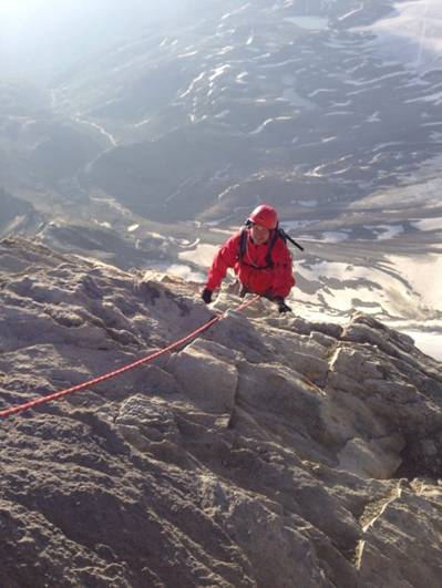 Joe am Grat zwischen Nord- und Ostwand, weiter unten die anderen 2 Seilschaften