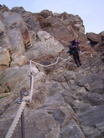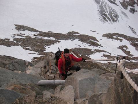 Joe als Seilträger auf dem gesicherten Steig zum Indrengletscher