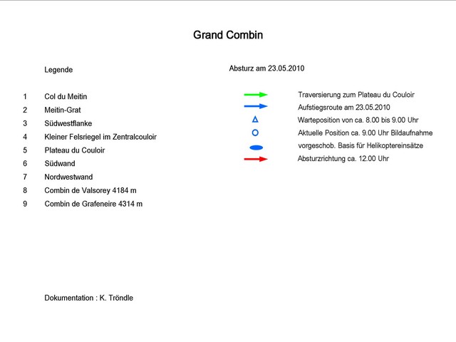 Die Dokumentation beschränkt sich auf die Ablaufprotokollierung der Geschehnisse am 23.05.2010 in der Südwestflanke des Grand Combin de Valsorey ohne auf die persönlichen Umstände einzugehen.